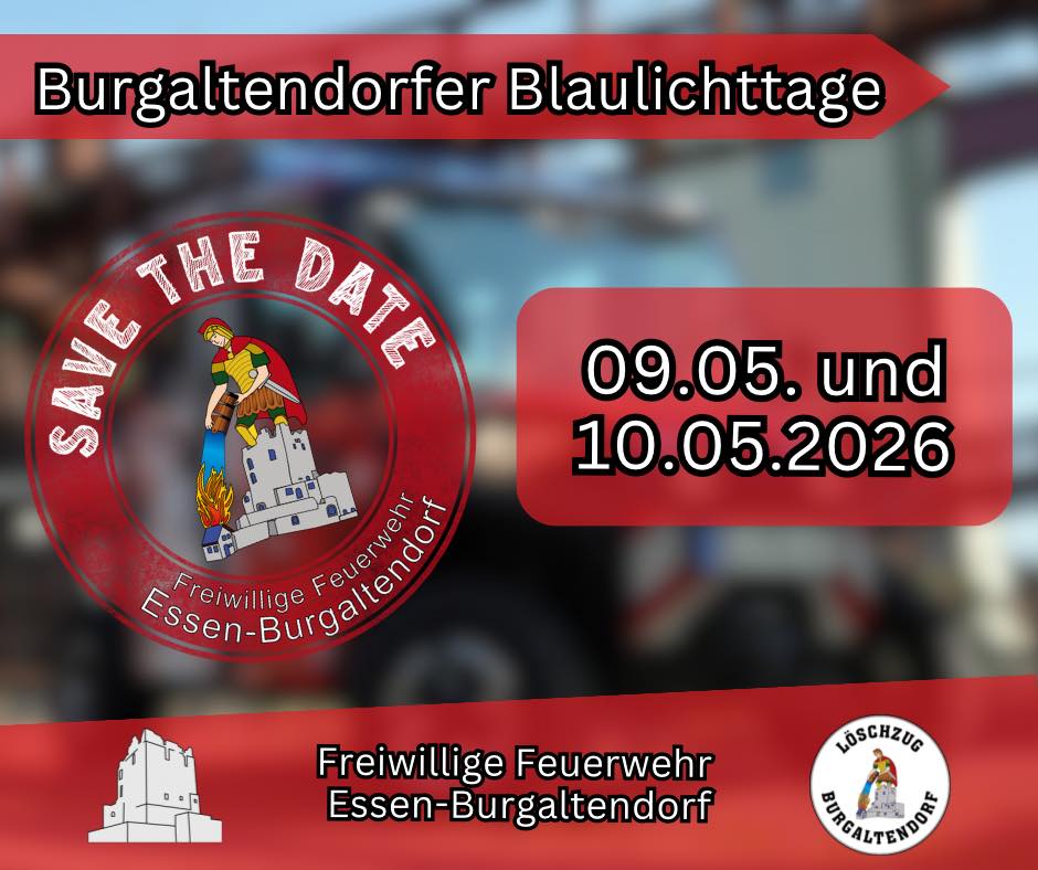 Burgaltendorf bekommt ein neues Veranstaltungsformat: Am 09. und 10. Mai 2026 finden erstmals die Burgaltendorfer Blaulichttage statt. Der Förderverein der Feuerwehr schlägt damit ein neues Kapitel auf – als Weiterentwicklung des bisherigen „Tags der offenen Tür“, der traditionell Ende August veranstaltet wurde.